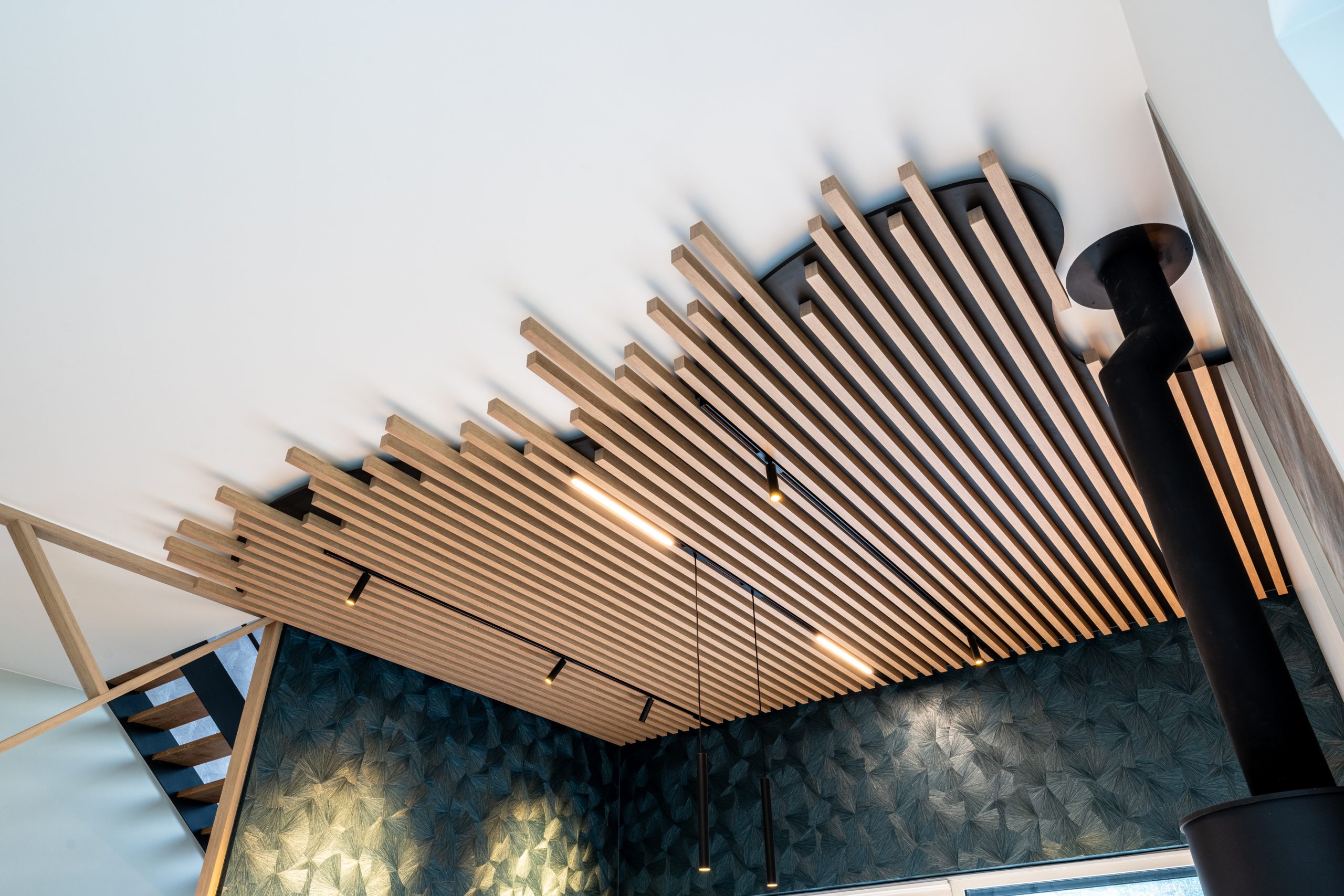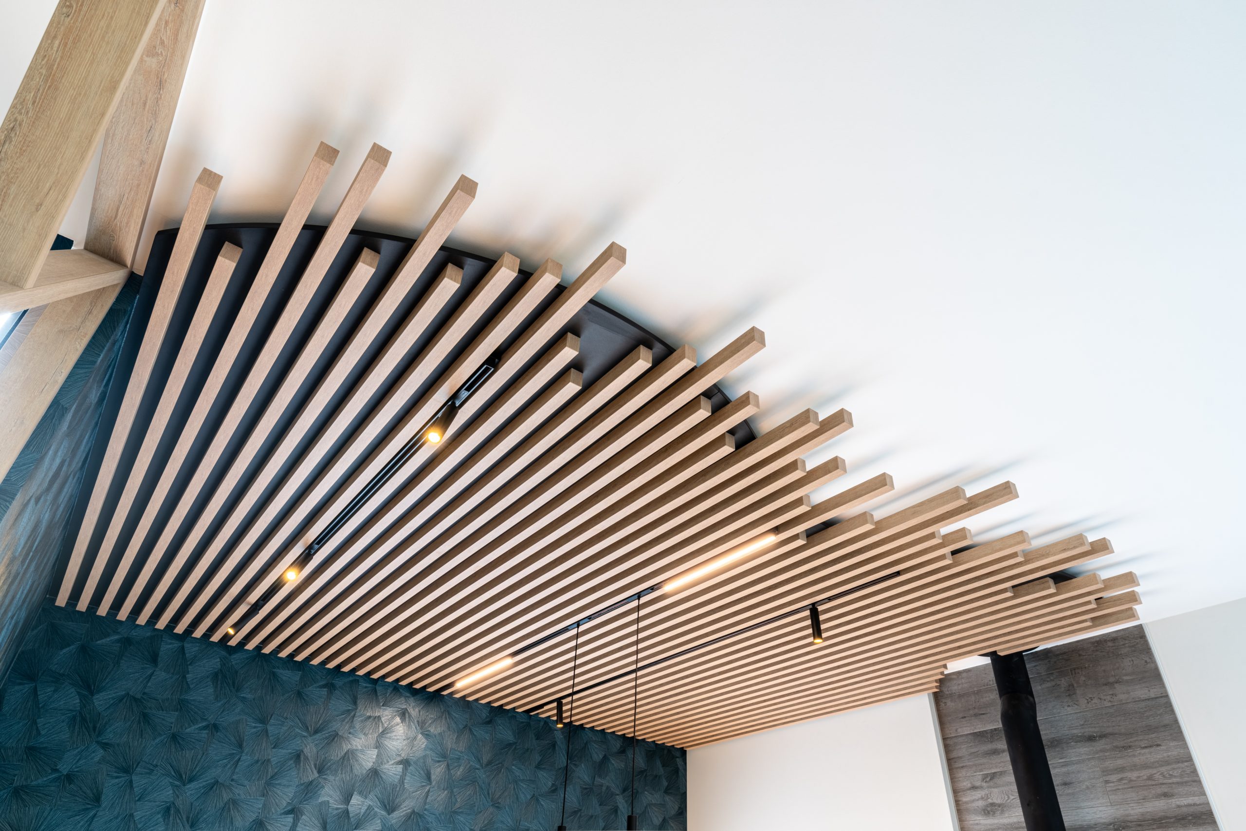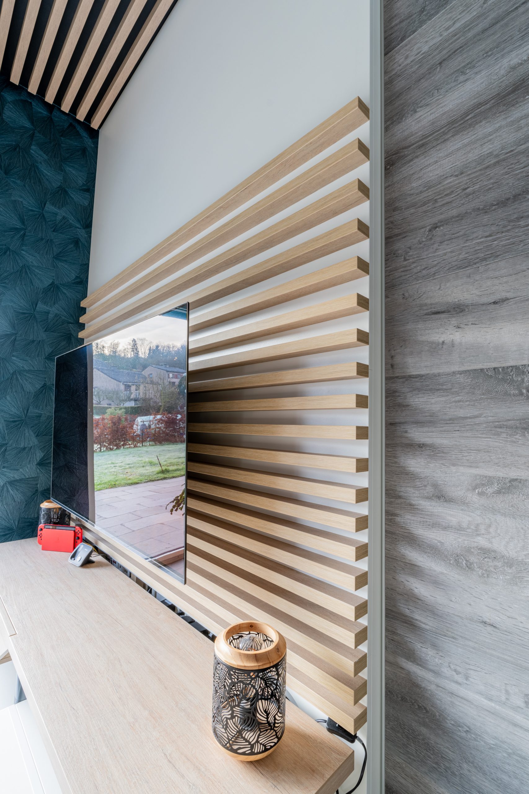 Cloison et étagère en pente menuiserie Paul-Marthus